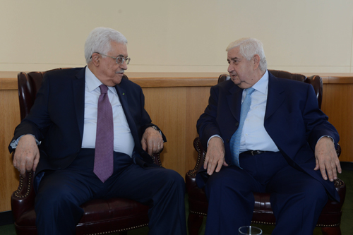 نيويورك/ اجتمع رئيس دولة فلسطين محمود عباس، على هامش أعمال الجمعية العامة للأمم المتحدة، مع وزير الخارجية السوري وليد المعلم.