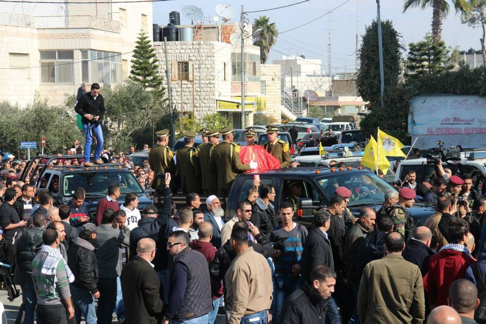 الرئيس عباس والمشيعون يؤدون صلاة الجنازة على جثمان الشهيد أبو عين