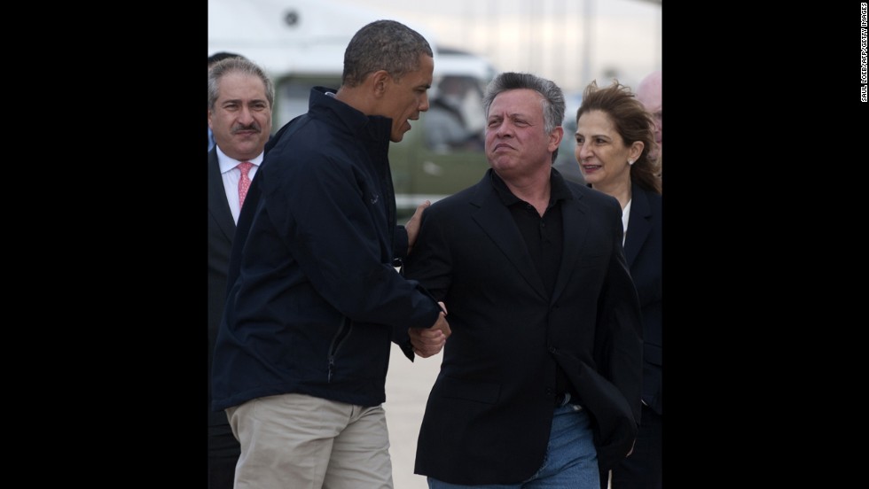 واشنطن/ أجرى الرئيس الامريكي باراك اوباما لقاء قصيرا جدا لم يستغرق اكثر من خمس دقائق مع العاهل الاردني الملك عبدالله الثاني في قاعدة اندروز الجوية القريبة من العاصمة الامريكية واشنطن.