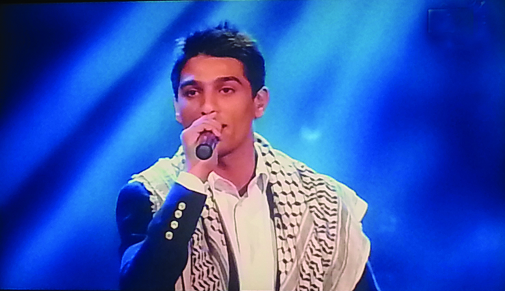 وعرض علامة أمام جمهور 'ارب أيدول' رسالة مؤثرة وصلت إليه من قبل احد الأسرى داخل سجون الاحتلال ومحكوم عليه بالسجن لمدة 28 سنة، مرفقة بصورة الفنان والمتسابق محمد عساف، مشيرا إلى أن الرئيس محمود عباس، اتصل به اليوم تشجيعا للفنان عساف ودعما له.