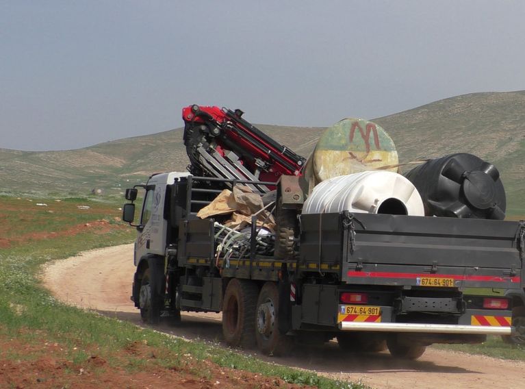 لكن إسرائيل صادرت تنك الماء والجرار الخاص به يوم أمس، ونفدت البراميل من الماء المخزن فيها فاضطرت العائلة للرحيل.
