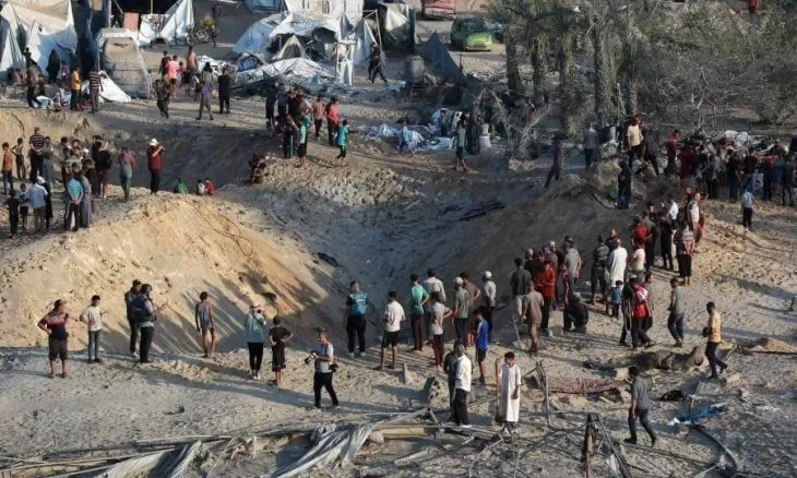 وقال المتحدث باسم الدفاع المدني في قطاع غزة، محمود بصل، إن الغارات استهدفت تجمعا لخيام النازحين مكونا من 20 خيمة على الأقل مأهولة بالسكان في منطقة ادعى الاحتلال أنها إنسانية.