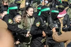 وقف مقاتلون من الجناح العسكري لحركة حماس، كتائب عز الدين القسام، بالزي العسكري الكامل، إلى جانب الأسيرات، وكان وجودهم إعلانًا جريئًا للتحدي.