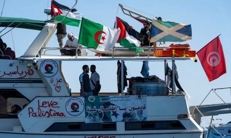تتزايد المخاطر والتهديدات مع اقتراب أسطول الصمود من غزة والمتواجد حاليا في المنطقة البرتقالية أي على أمتار قليلة من مساحة تدخل الكيان الصهيوني، الأسطول وفق أرقام قدمتها عضو تنسيقية أسطول الصمود المغاربي جواهر شنة خلال ندوة صحفية انعقدت في مقر النقابة الوطنية للصحفيين التونسيين، يضمّ 50 سفينة و532 مشاركا من أكثر 45 دولة مع مشاركة بارزة للجانب المغاربي، 52 مشارك، من تونس ، 30 مشارك، وموريتانيا، مشاركين اثنين، والمغرب ، 4 مشاركين، والجزائر، 26 مشارك، يتوزعون على 10 سفن، وبحسب جواهر شنة فإن الأسطول تفصله سويعات قليلة عن غزة وهو متواجد في المنطقة البرتقالية أي قبل المنطقة الحمراء التي عادة يمكن أن يتم فيها الاعتراض من قبل الكيان الصهيوني لأساطيل كسر الحصار عن غزة. ويشار إلى أن وزارة الدفاع الإيطالية أكدت مساء أمس أن البحرية الإيطالية ستنسحب من مرافقة أسطول دولي يحاول إيصال المساعدات إلى غزة بمجرد وصوله إلى مسافة 150 ميلا بحريا (278 كيلومترا) من الشاطئ.