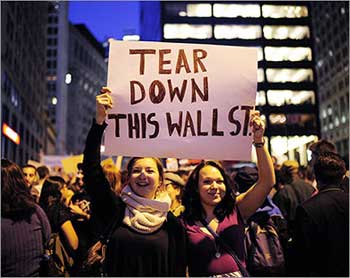 هذه عينة من الشعارات التي كان يرفعها المشاركون في الاحتجاجات الجماهيرية التي سبق ونظمتها الحركة الراديكالية الأميركية "احتلوا وول ستريت". فحينما قرر عدد من المتظاهرين في 17 ايلول/سبتمبر من السنة الماضية ان يجلسوا للاحتجاج في بارك "زوكوتي" في نيويورك، على النهب الدائم للشغيلة من قبل المستثمرين ورجال البنوك، لم يكن أحد تقريباً يتوقع ان الحركة يمكن أن تتحول الى حركة جماهيرية واسعة متعددة القوميات ضد النخبة الرأسمالية، الأمر الذي هدد النظام الاقتصادي القائم والسلم الاجتماعي العام.